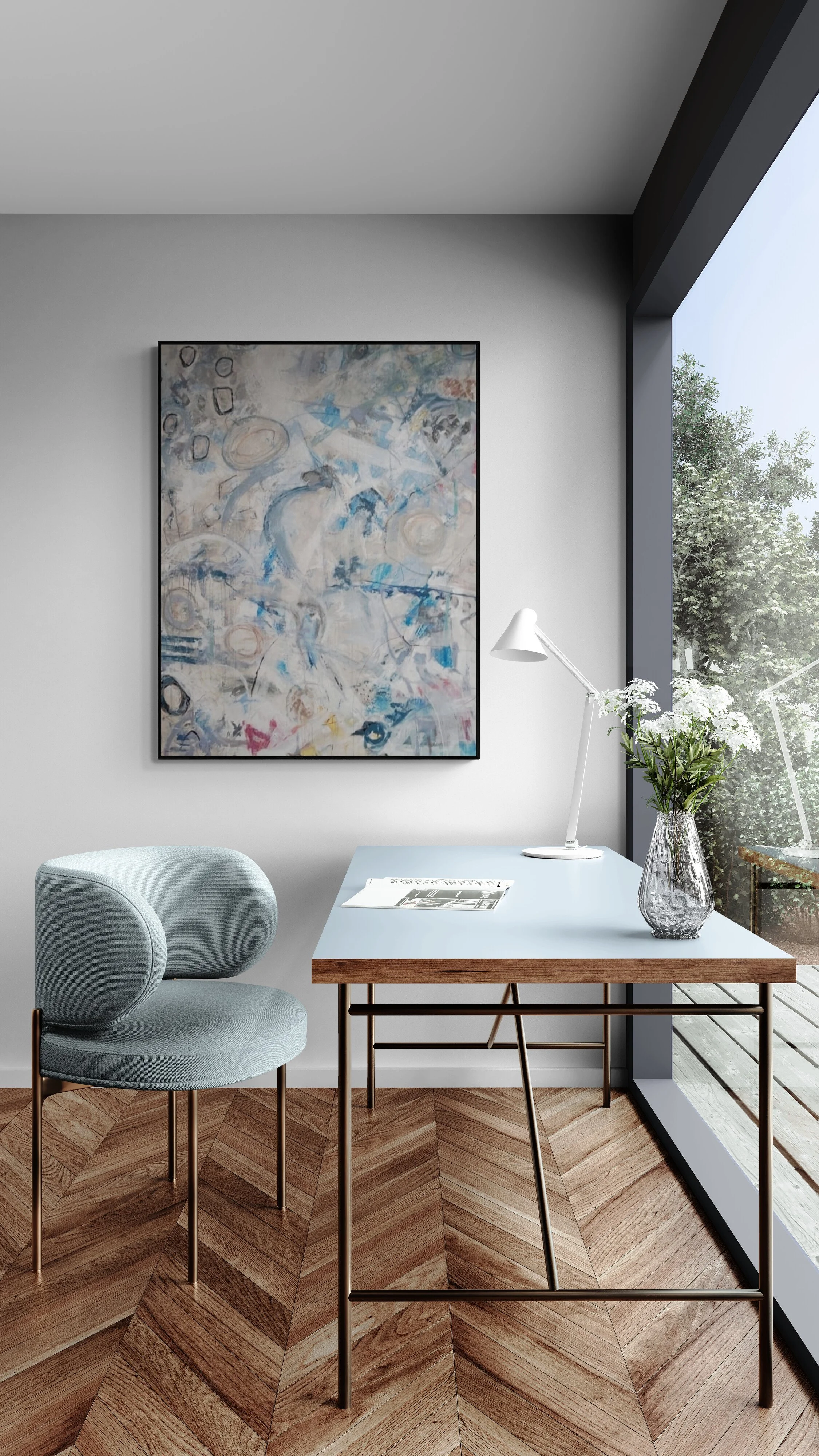 Lori Johnson is an American painter celebrated for her vibrant, textured compositions and dynamic mark-making. In her Dallas studio, she often works on multiple pieces simultaneously, driven by her fascination with landscapes, color, and ornamental expression. Her paintings showcase a lively interplay of colors, embodying a positive spirit and visual sophistication. Through sculpting and scratching techniques, Lori creates layered, complex works that pulse with life and energy
